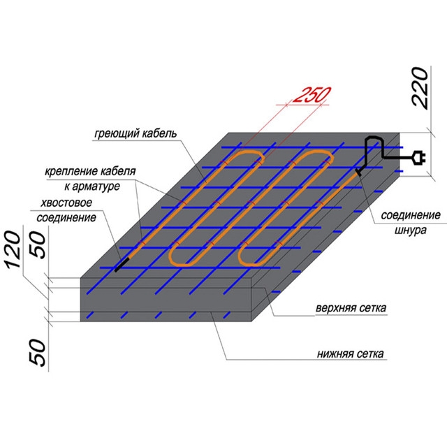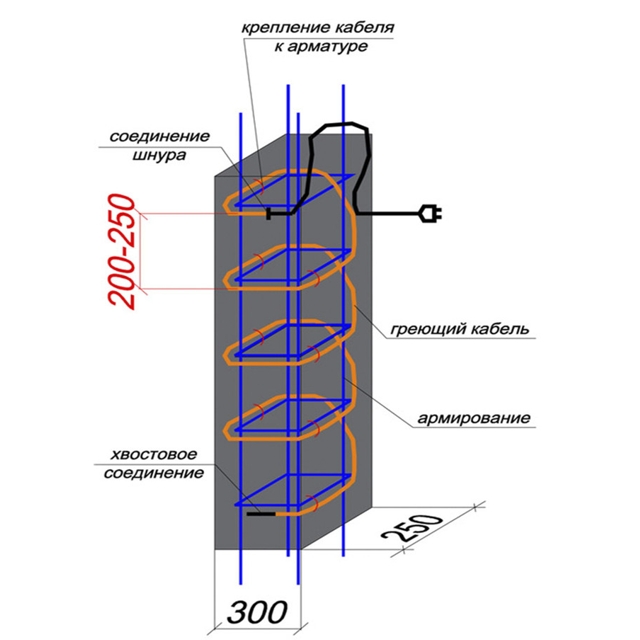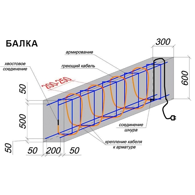 Заявку и реквизиты для выставления счета можно отправить на dobroeteplo74@mail.ruОТПРАВКА в день заказа на сайте. ДОСТАВКА 1-3 дня в зависимости от расстояния. ДВУЖИЛЬНЫЙ НАГРЕВАТЕЛЬНЫЙ КАБЕЛЬ ДЛЯ ПРОГРЕВА БЕТОНАНагревательный кабель предназначен для прогрева бетона при низких температурах воздуха от сети 220 в даже зимой (до - 30 С). Секция нагревательная кабельная - это двухжильный резистивный кабель, мощностью 40 Вт/м В процессе прогрева бетона кабель равномерно нагревается до 60 С, что не приводит к перегреву бетона, тем самым исключая образование пузырей и раковин, уменьшающих прочность бетонной конструкции! Кабель используется при минусовых температурах для последующего затвердевания бетона ,что позволяет вести строительство фундамента и стен в зимних условиях, без использования дорогостоящих и мощных трансформаторов. Основная область применения кабеля для обогрева бетона: ‐при заливке небольших монолитных конструкций; ‐ при заливке колонн, тумб, стенок, отмосток; ‐ при подаче бетона из миксера на объекте; ‐ при использовании вибратора без опаски повреждения кабеля. Прогрев бетона обычно занимает от 3 до 7 суток, в зависимости от температуры окружающей среды.